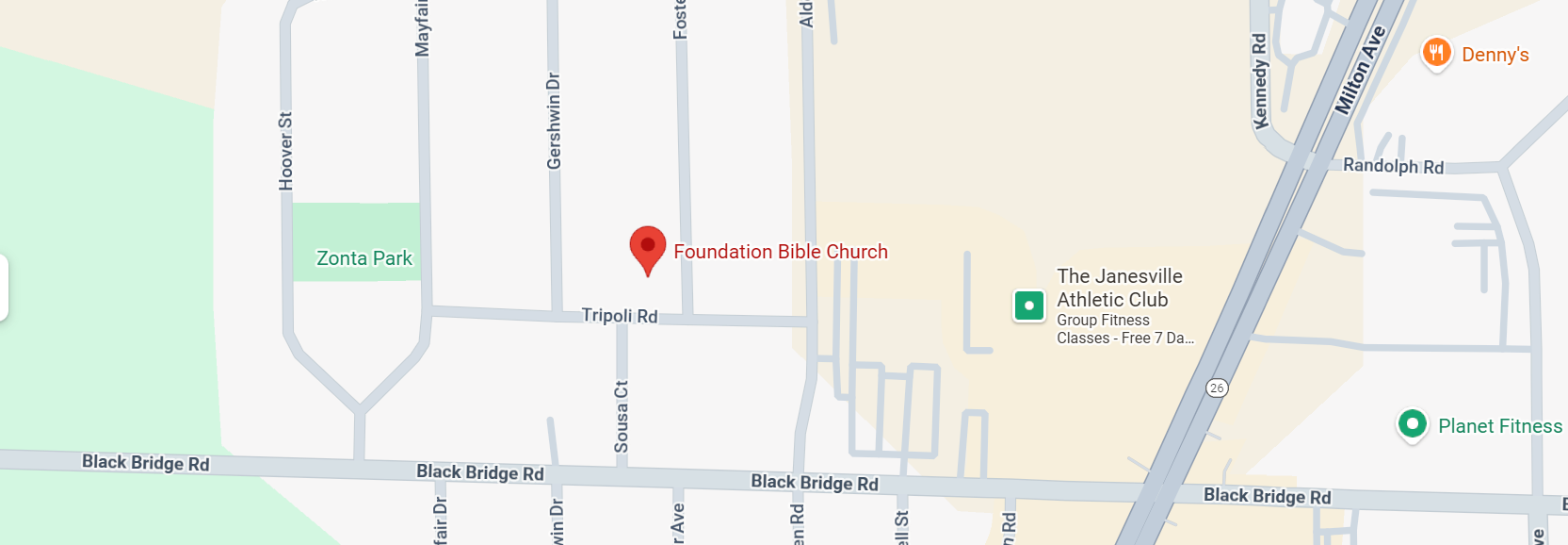 Foundation Bible Church is a gathering of Christians based in Janesville, WI, with a second campus, Foundation International Bible Church in Madison, WI.